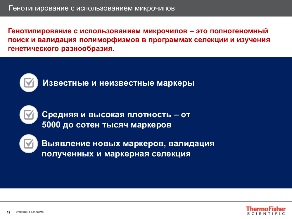 Компания ThermoFisher Scientific предлагает решения под любые задачи связанные с геномной селекцией.