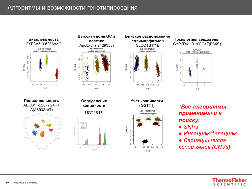 Thermo FS работает со сложными геномами, берет в работу не только стандартные простые геномы, но и работает с биаллельностью, с высокой долей ГЦ оснований в составе, с гомологией/псевдогенами, определяет копийность благодаря программному обеспечению с широкими возможностями.