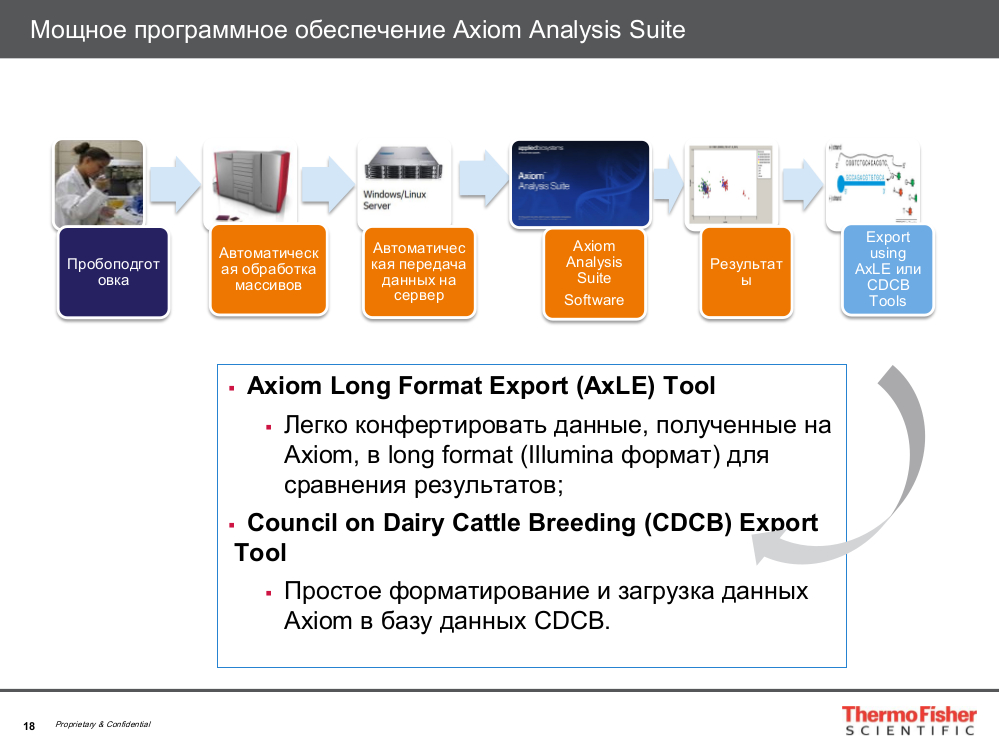 Thermo FS является пионером в области разработки и внедрения микрочипов и на сегодня занимает лидирующее положение в мире по инновациям и широте решений, предлагаемых для геномной селекции.