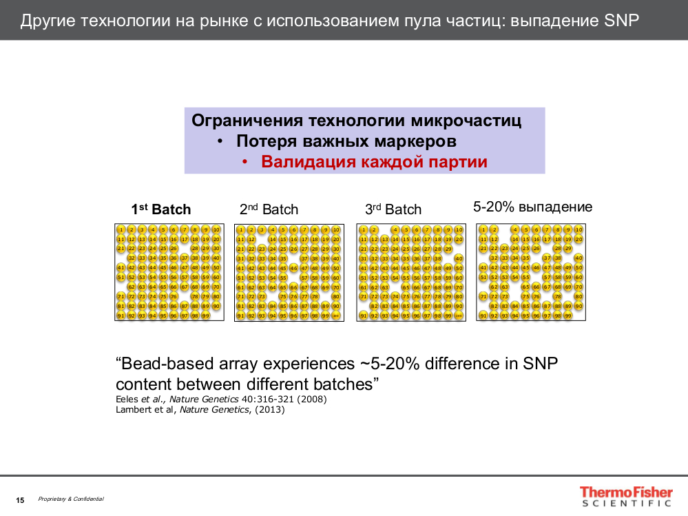 Технология фотолитографии позволяет поддерживать одинаковый контент – набор маркеров – независимо от партии: первая ли это партия, когда мы только начинаем работать, либо это партии через год или два.