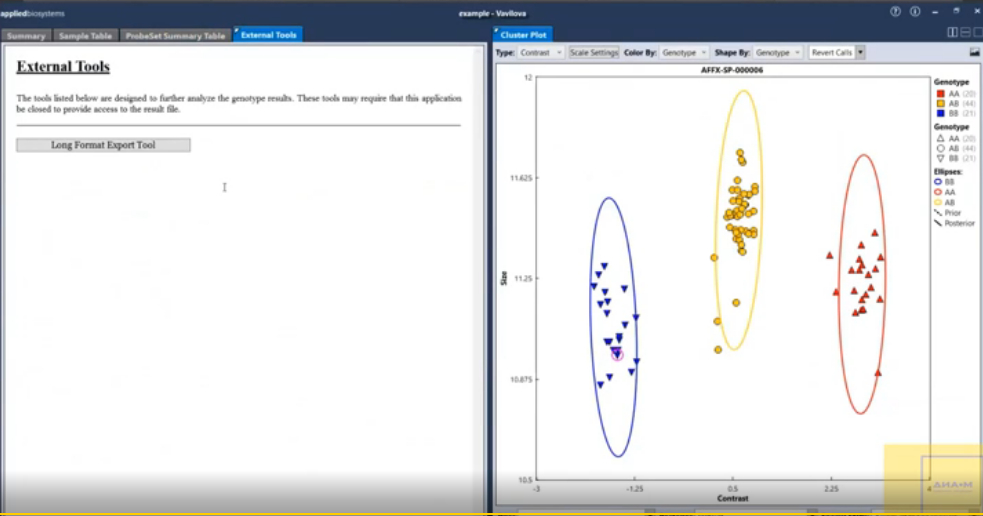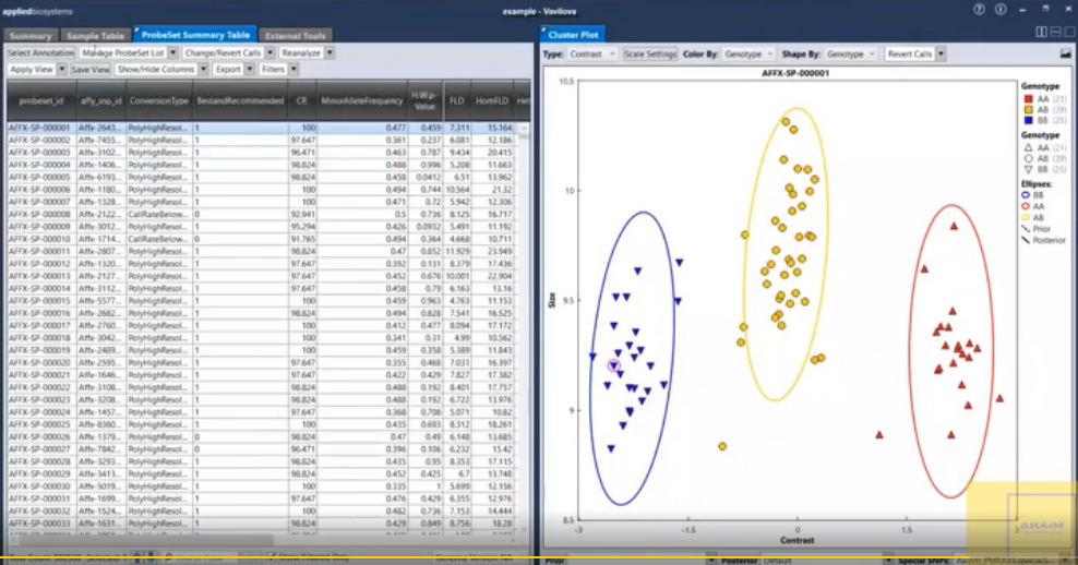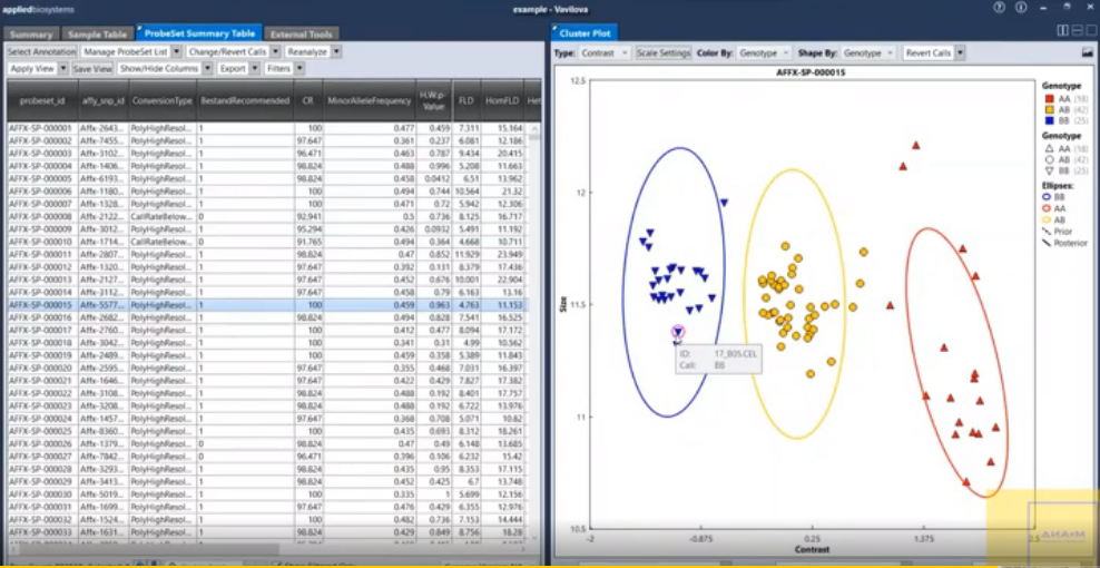 Так выглядят данные при работе с технологией микрочипов с приборами GeneTitan и программой Axiom Analysis Suite.