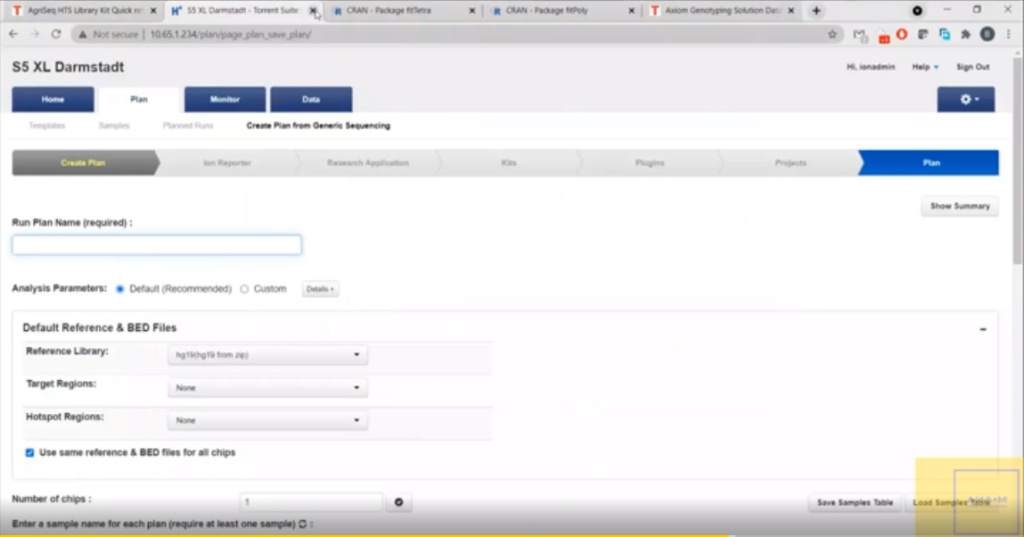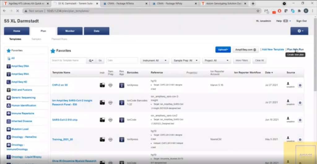 Чтобы проанализировать какие-то данные технологии AgriSeq, нужно запланировать ран (запуск, прогон). Для этого есть уже готовые шаблоны, которые можно, но не необходимо использовать: все настройки можно ввести самостоятельно.