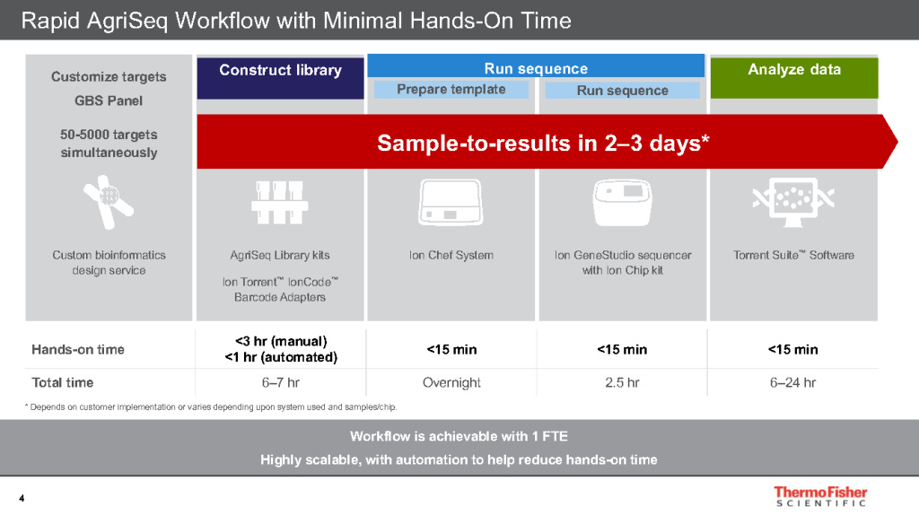Для работы нужны система Ion Chef System и секвенатор серии Ion GeneStudio S5, а также чипы, загружаемые на приборы, и необходимая для них химия. Весь процесс имеет высокий уровень автоматизации и требует очень мало времени на ручной труд – в основном на стадии подготовки библиотек, но и в этом случае требуется не более 15 минут в день.