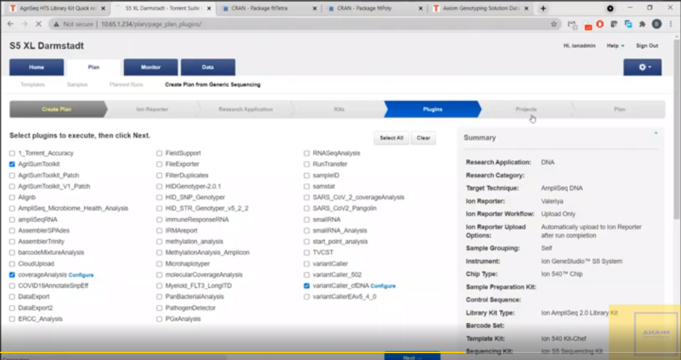 Плагины программного пакета Torrent Suite для сбора и визуализации данных по технологии AgriSeq