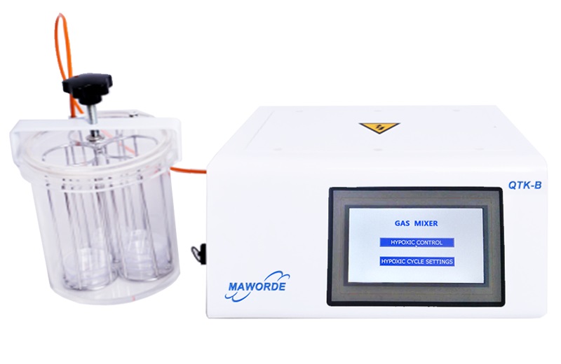 Смеситель трехгазовый, Maworde позволяет осуществлять точный контроль концентраций кислорода и углекислого газа, что делает его идеальным для создания смешанной газовой среды с гипоксией при исследованиях клеток и тканей. Данный смеситель может смешивать 100% O₂, CO₂ и N₂ газа, что позволяет также создавать анаэробные среды.