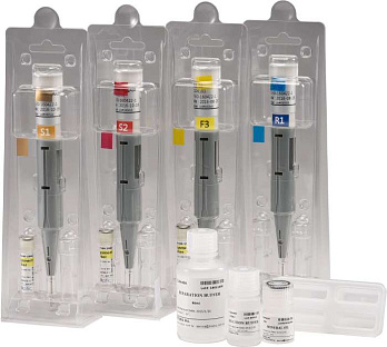 Картриджи для системы капиллярного электрофореза Qsep400: электрофорез в Qsep происходит в картриджах разных типов для разделения ДНК, РНК и белков. Картридж рассчитан на анализ 400-1200 образцов. В комплект поставки входят все необходимые расходные материалы для электрофореза — буфер для разделения, буфер для разведения образцов, пробирки в стрипах, ванночки и пипетки для буфера, выравнивающий маркер.