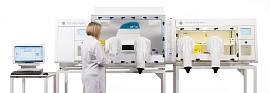 H85 точно контролирует O₂, CO₂, температуру и влажность для создания оптимальных условий при работе с капризными культурами клеток. Внутренняя камера имеет объем 295 литров и воздушный шлюз объемом 30 л, что позволяет перемещать в рабочую камеру крупные объекты.