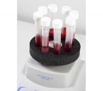 Платформа SV-8/15 рассчитана для размещения восьми пробирок с внешним диаметром 16 мм и объёмом 15 мл. Она может использоваться совместно с вортексом MSV-3500 для осуществления любого типа перемешивания различных реагентов.