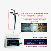 Магнитная мешалка с нагревом МR Hеi-Tech, Heidolph имеет плавный старт, цифровой дисплей для отображения рабочей температуры и скорости перемешивания, уникальная запатентованная рабочая платформа Kera-Disk выполнена из сплава алюминия, покрытого тонким слоем керамики, такая конструкция не только обеспечивает быстрый нагрев, но и защищает поверхность от воздействий агрессивной химии. Герметичный корпус исключает возможность попадания паров и жидкостей внутрь.