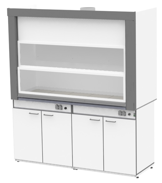 Шкаф вытяжной общего назначения, ширина 180 см, корпус – ЛДСП, столешница – цельная керамика Fridurit, 2 тумбы, ЛОиП