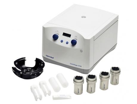 Комплект поставки: центрифуга 5702R, бакет-ротор A-4-38, 4 круглых бакета, 4 адаптера для пробирок забора крови 13 мм, 4 адаптера для пробирок забора крови 16 мм.
