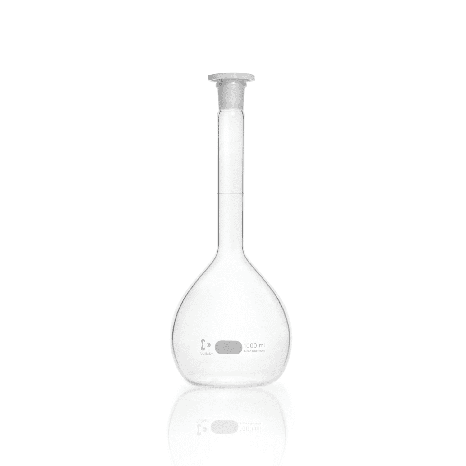 Колба мерная, 1000 мл, класс А, d горла 23 мм, БС, шлиф 24/29, с одной отметкой, с крышкой из РЕ, белая градуировка, 2 шт/уп, DWK Life Sciences (Duran, Wheaton, Kimble, Rasotherm)