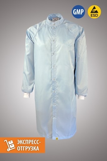 Защитная одежда для чистых помещений для работы в помещениях класса чистоты ISO 7 — ISO 8. Халаты многоразовые, изготовлены из полиэфирных тканей (96 % полиэстер, 4 % антистатическая нить; 52 % полиэстер, 45 % хлопок, 3 % углеродная нить; 65 % полиэстер, 35 % хлопок), подлежит стерилизации.