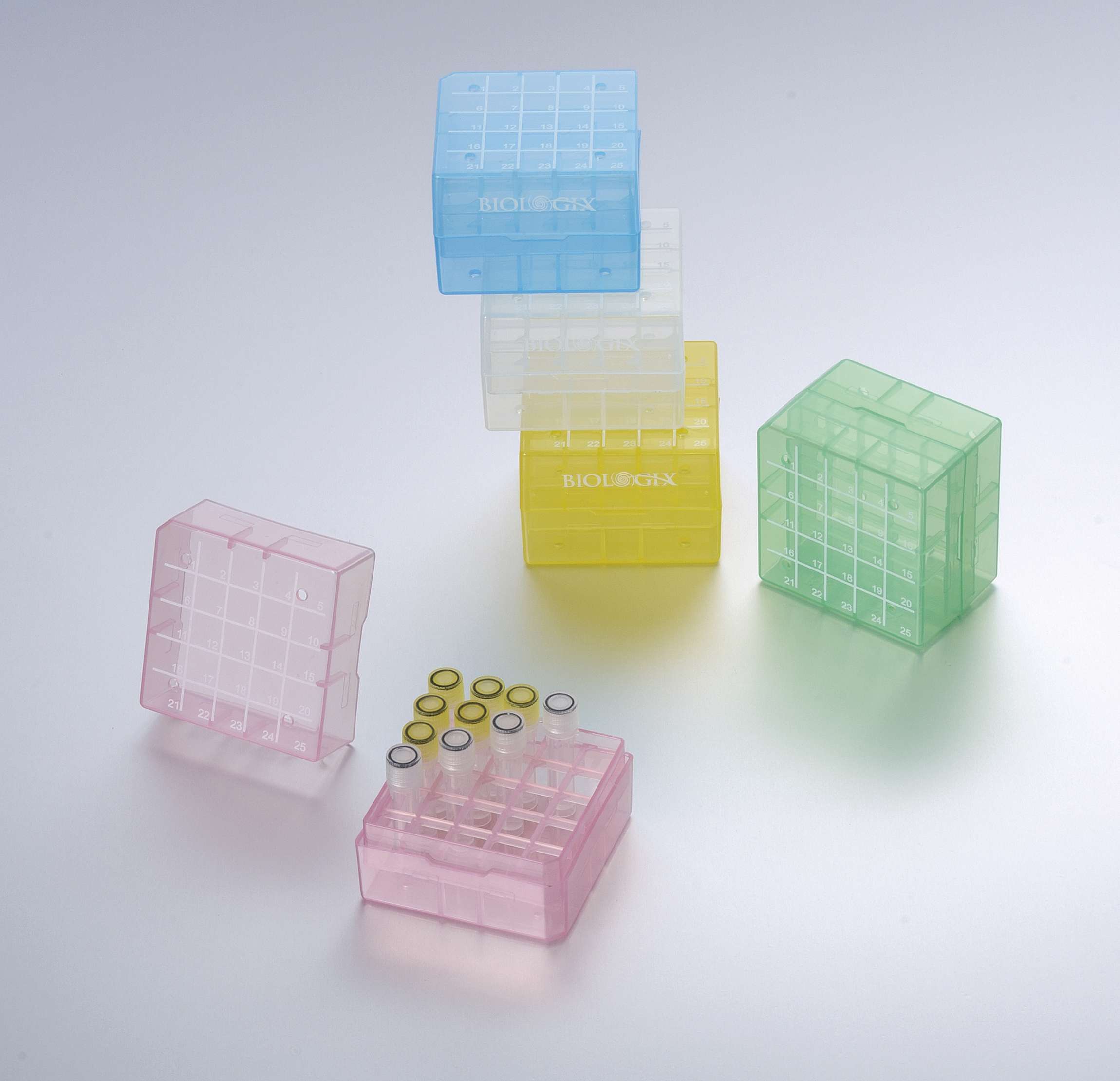 Штатив для хранения криопробирок 1-2 мл, 25 мест, полипропилен, с крышкой, набор разных цветов, Biologix, Китай