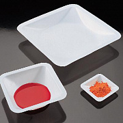 Тарелочки для взвешивания порошков, сыпучих и жидких веществ. Могут сгибаться, образуя желобок для легкого переноса взвешиваемого материала в емкость. Изготовлены из биоинертного химически чистого материала, резистентного к спиртам, щелочам, кислотам и другим разбавленным растворам.