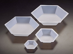 Тарелочки для взвешивания порошков, сыпучих и жидких веществ. Могут сгибаться, образуя желобок для легкого переноса взвешиваемого материала в емкость. Изготовлены из биоинертного химически чистого материала, резистентного к спиртам, щелочам, кислотам и другим разбавленным растворам.