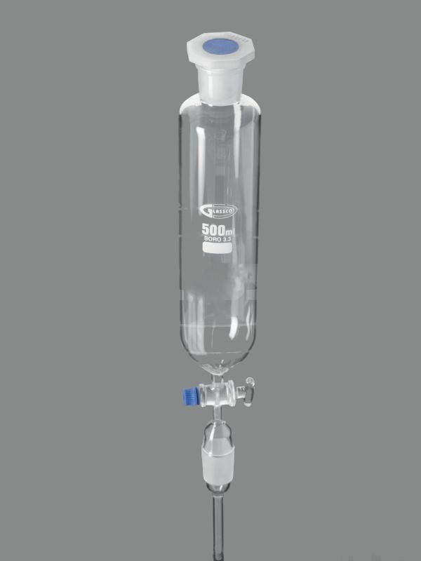 Воронка делительная, цилиндрическая, шлиф 29/32, запорный клапан из стекла, с раструбом и конусом, пробка ПП, 1 шт./уп., Glassco, Индия