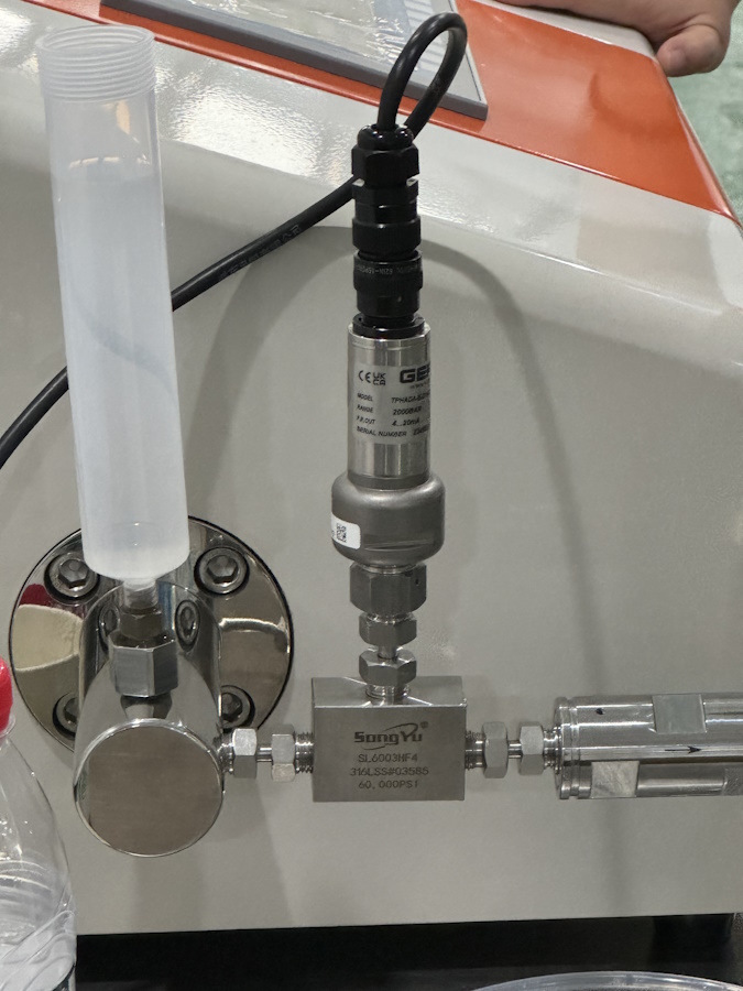 Комплект поставки: корпус, трубопровод, контактирующие части — сталь 316L; плунжер из циркониевого сплава; модуль гомогенизации с рубашкой охлаждения для возможности подключения внешнего чиллера для контроля температуры; гомогенизирующий эмульгирующий клапан; высокоточный датчик давления GEFRAN, Италия, диапазон: 0 ~ 2000 бар; 7-дюймовый сенсорный экран со встроенной системой управления PLC, отображает давление в реальном времени и график кривой давления во время работы; трубопровод с быстроразъемным соединением tri-clamp, материал прокладки EPDM; двигатель инверторный Bosch 2,2 кВт; стандартные уплотнения 1 комплект, материал — полиуретан; 1 комплект 250 мл/ 1 л приемных стаканов для подачи образцов из нержавеющей стали; безопасность: система автоматической остановки при избыточным давлении; устройство (кнопка) аварийной остановки; индикатор состояния или зуммер сигнализация; 1 комплект специального инструмента; электронная версия руководства пользователя. Аксессуары и опции