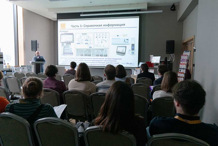 Основной сенсацией секции стала полная автоматизация технологии SARA, которая значительно ускоряет и упрощает анализ продуктов в нефтехимии. Теме был посвящен отдельный доклад, где демонстрировались возможности прибора для выявления мазута и битумных компонентов в пробах, определения насыщенныех, ароматических, смол и асфальтенов.