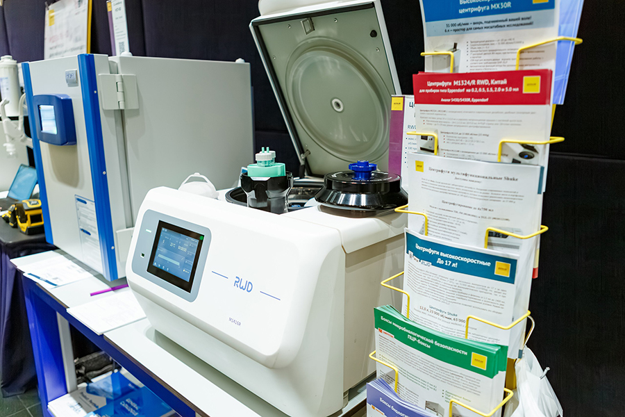 Для работы с культурами клеток была представлена компактная модель CO₂-инкубатора HCP-80 (Haier Biomedical) с воздушной рубашкой и функцией высокотемпературной стерилизации (180 °C). В зоне центрифугирования была выставлена линейка высокопроизводительных центрифуг от RWD (модели MX30R, M1324, M1416R). данное оборудование закрывает все потребности лаборатории: от микрообъемов на скоростях выше 15 000 об/мин до работы с суммарным объемом до 1600 мл в охлаждаемом режиме.