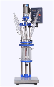 Небольшой лабораторный реактор EXS-1L с взрывобезопасным исполнением верхнеприводной мешалки, изготовленный из высокопрочного боросиликатного стекла, прекрасно подходит для синтеза.
