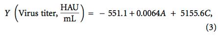where the NDV production as yield (Y) is a function of cell inoculum (A) and multiplicity of infection, MOI (C). At the model level, multiple correlation coefficient R and the determination coefficient R2 measure for the esti- mation of the regression equation. The correlation between |