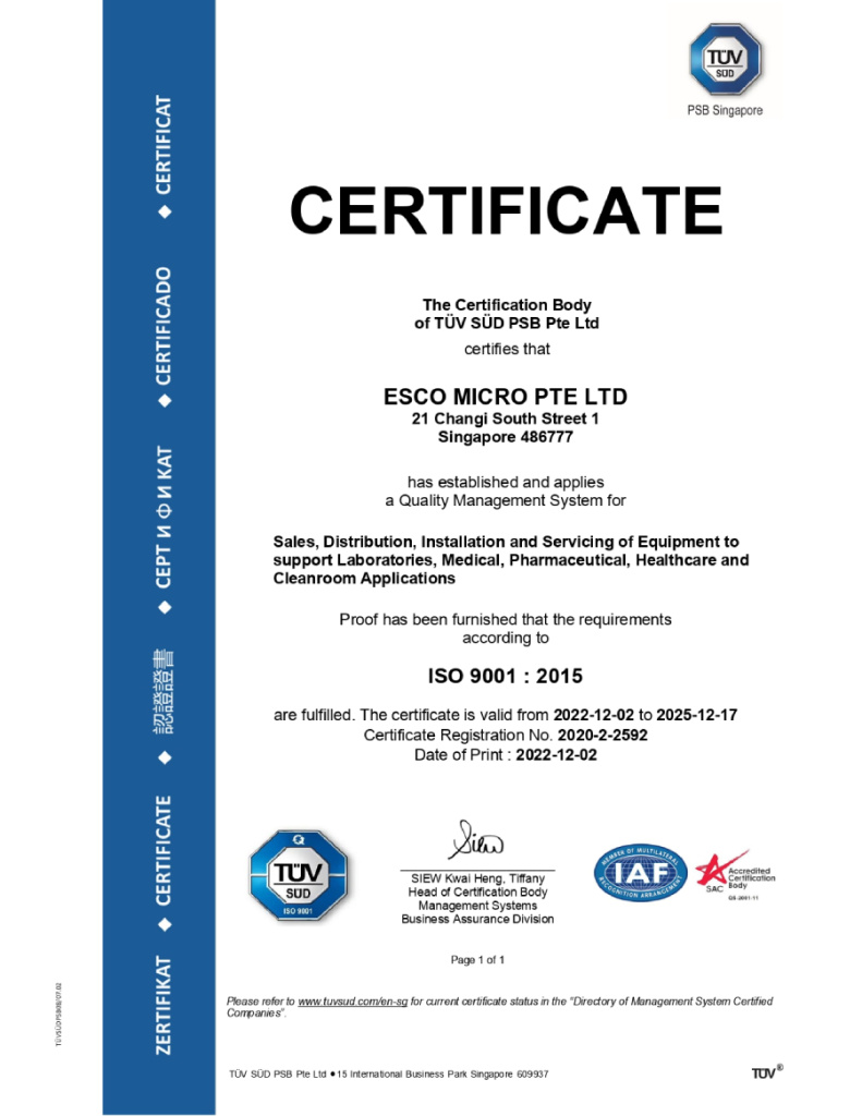 Компания Esco Lifesciences — ведущий мировой производитель и поставщик инструментов для медико-биологических исследований. Продажа продукции компании осуществляется по всему миру. Среди продуктов компании — лабораторное, биофармацевтическое оборудование, а также приборы для эстракорпорального оплодотворения (ЭКО).